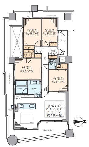 南向きバルコニー 専用ポーチ スロップシンク付き 床暖房付き システムキッチン 浴室乾燥機 角部屋