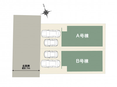 - 西側 幅員約6.7 m の公道 に 約6.15 m 接面