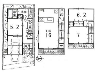 - ※2階造付バルコニー:約5.00㎡、3階造付バルコニー:約4.14㎡