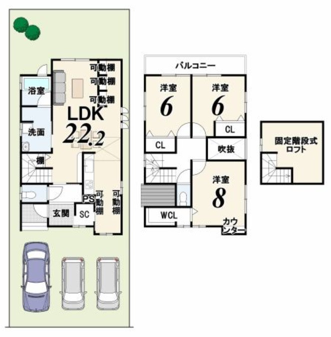 - 固定階段式ロフト付き