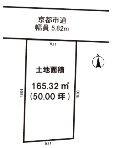 • 北側 幅員約5.8 m の公道 に 約9.11 m 接面