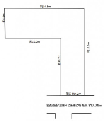 • 南側 幅員約3.38 m の私道 に 約4.2 m 接面